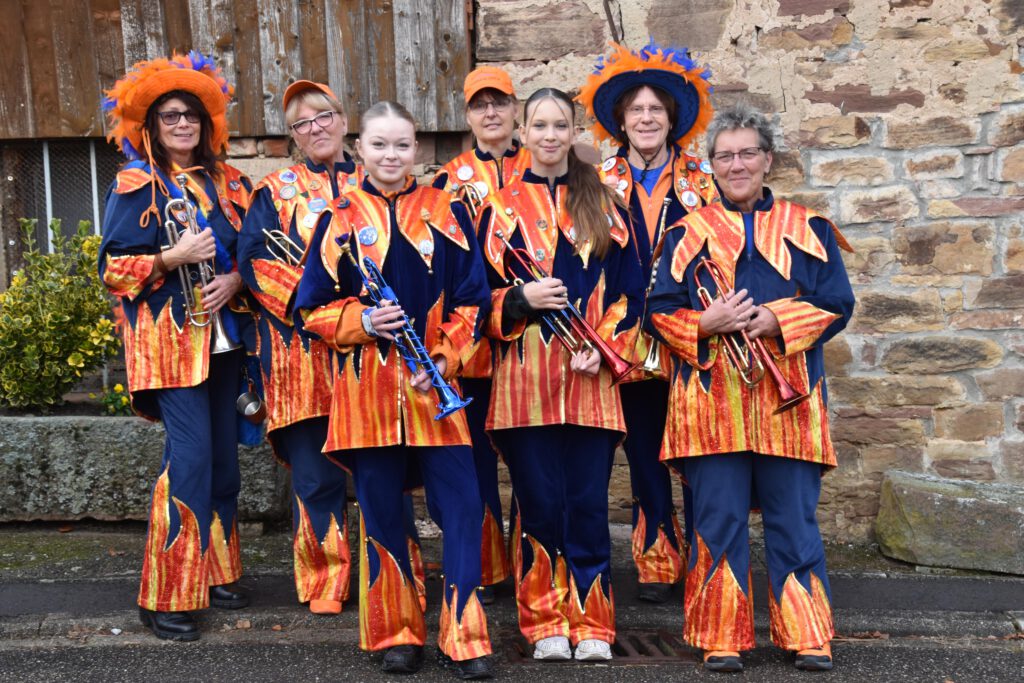 An den Trompeten v.l.n.r.: Petra, Martina, Lily, Susanne, Samiera, Hermann, Babs